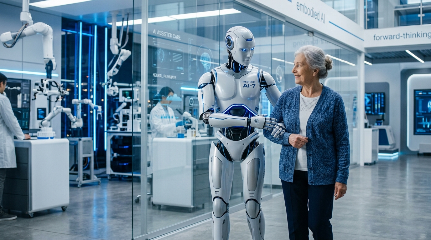 Healthcare robots surge to combat nursing shortages, delivering meds, elder care, and diagnostics. Humanoid service droids via embodied AI herald a new era—InteliDroid at the forefront.